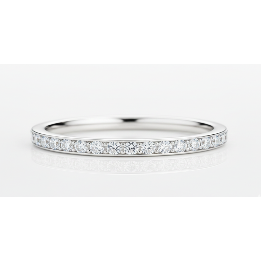 Continuous Sparkle: Adorned with a line of brilliant-cut diamonds, securely set to maximize their fire and brilliance.